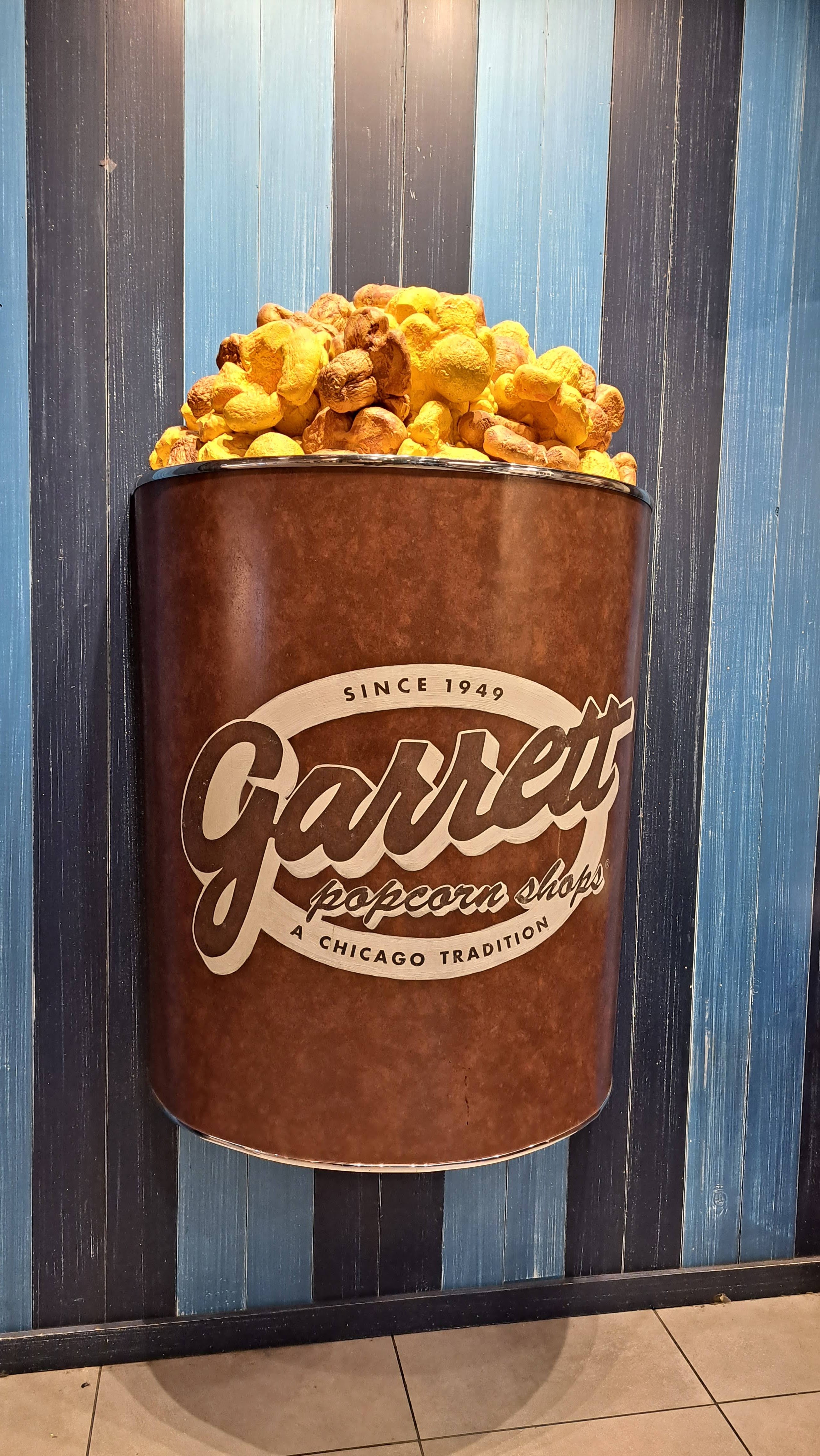 Comemos a famosa pipoca Garret e também almoçamos por lá.